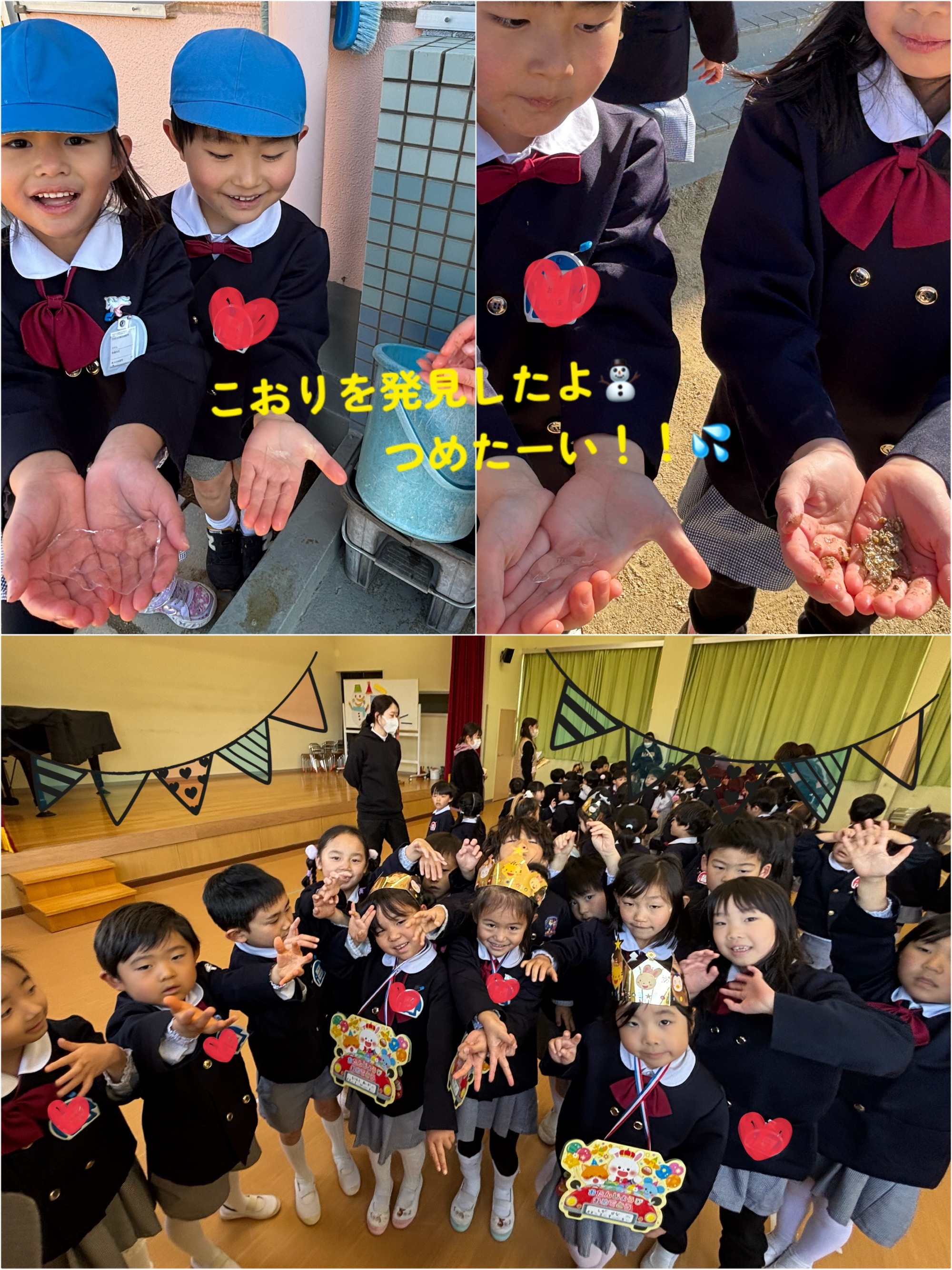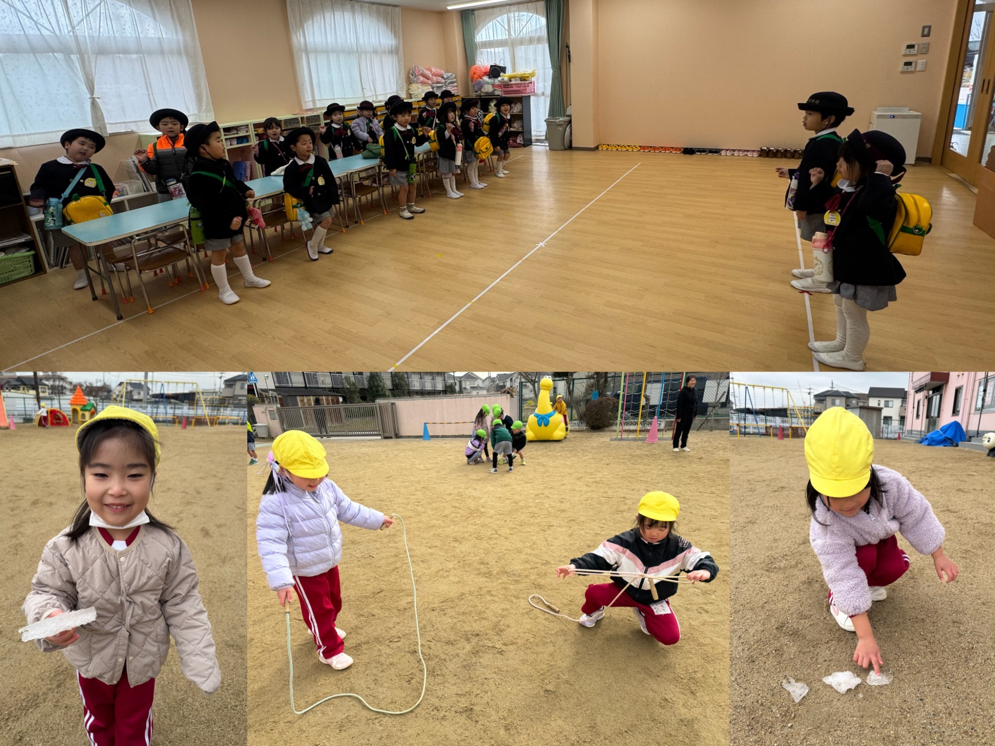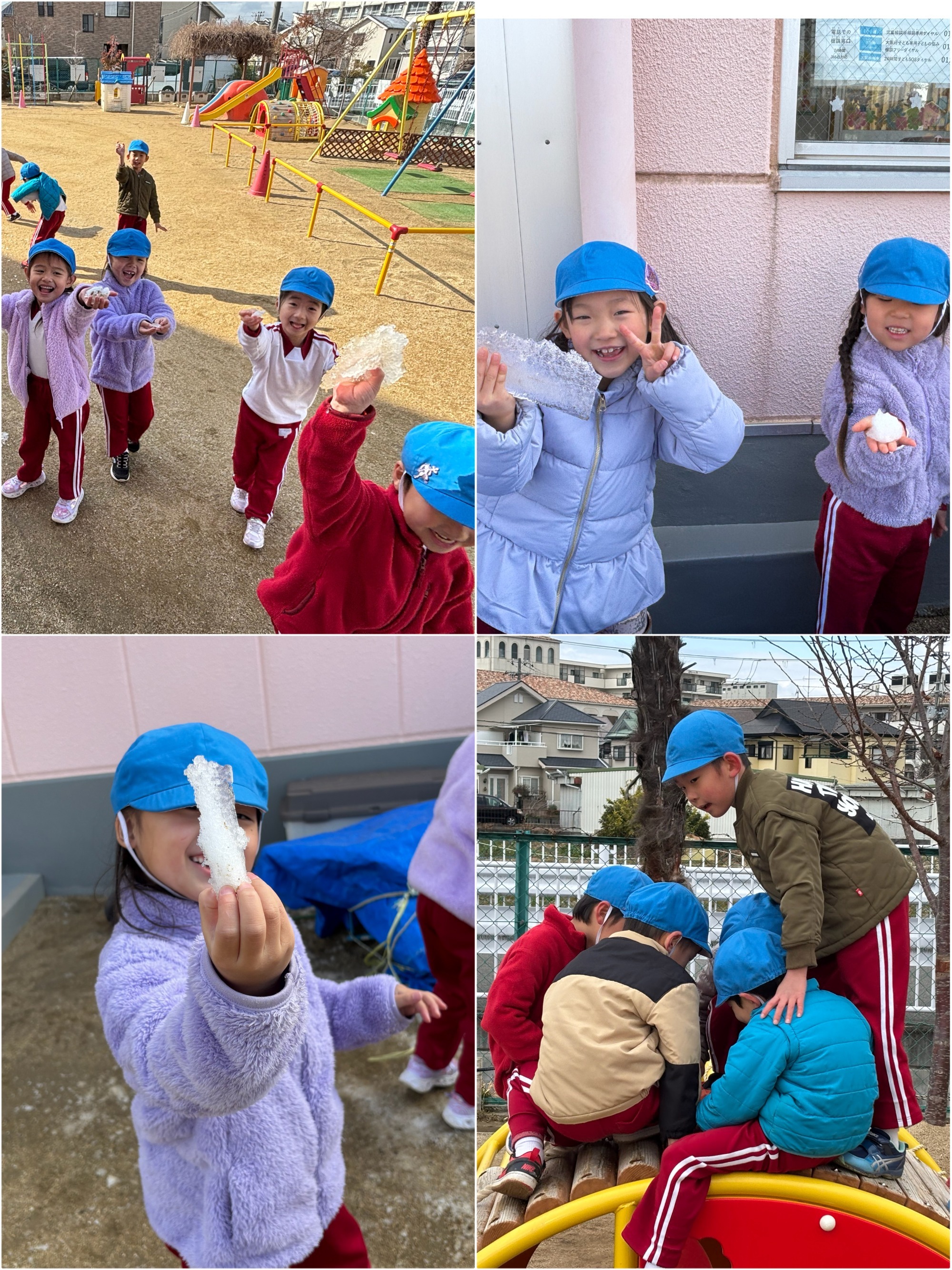 年長 とても寒い朝でしたが、氷を見つけて楽しそうなみんなです😊