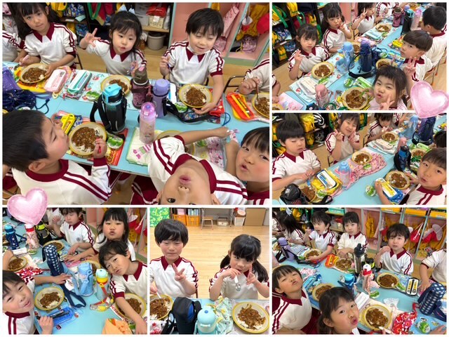 年長 今日はハヤシライス♡「大盛りください!」みんな食べ盛りです😊