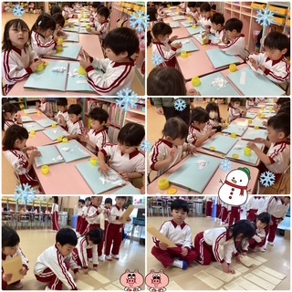 年少 ゆ〜きやこんこ🎵製作帳に雪をふらしました☃️