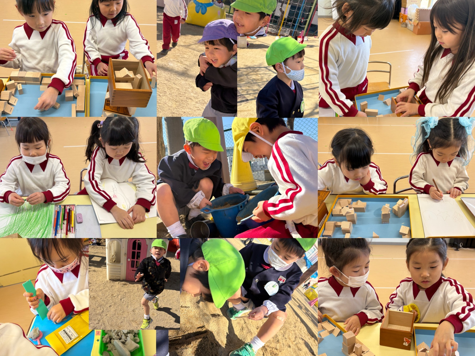 自分の顔を描きました😊お着替えの後はニューブロックをして遊んだよ✨