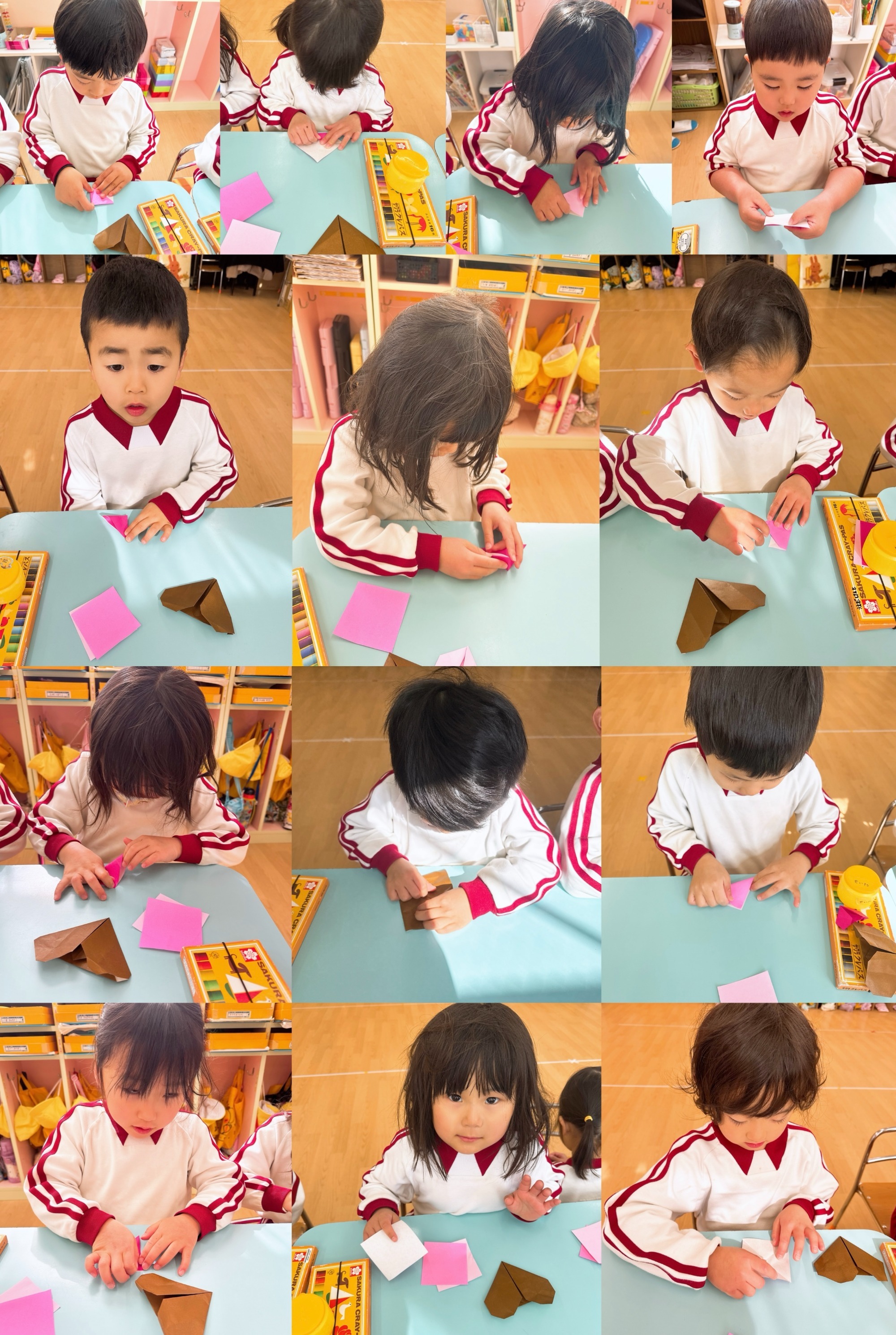 4/9 折り紙を折って、ハサミで切って...プレゼント作り🎶✨