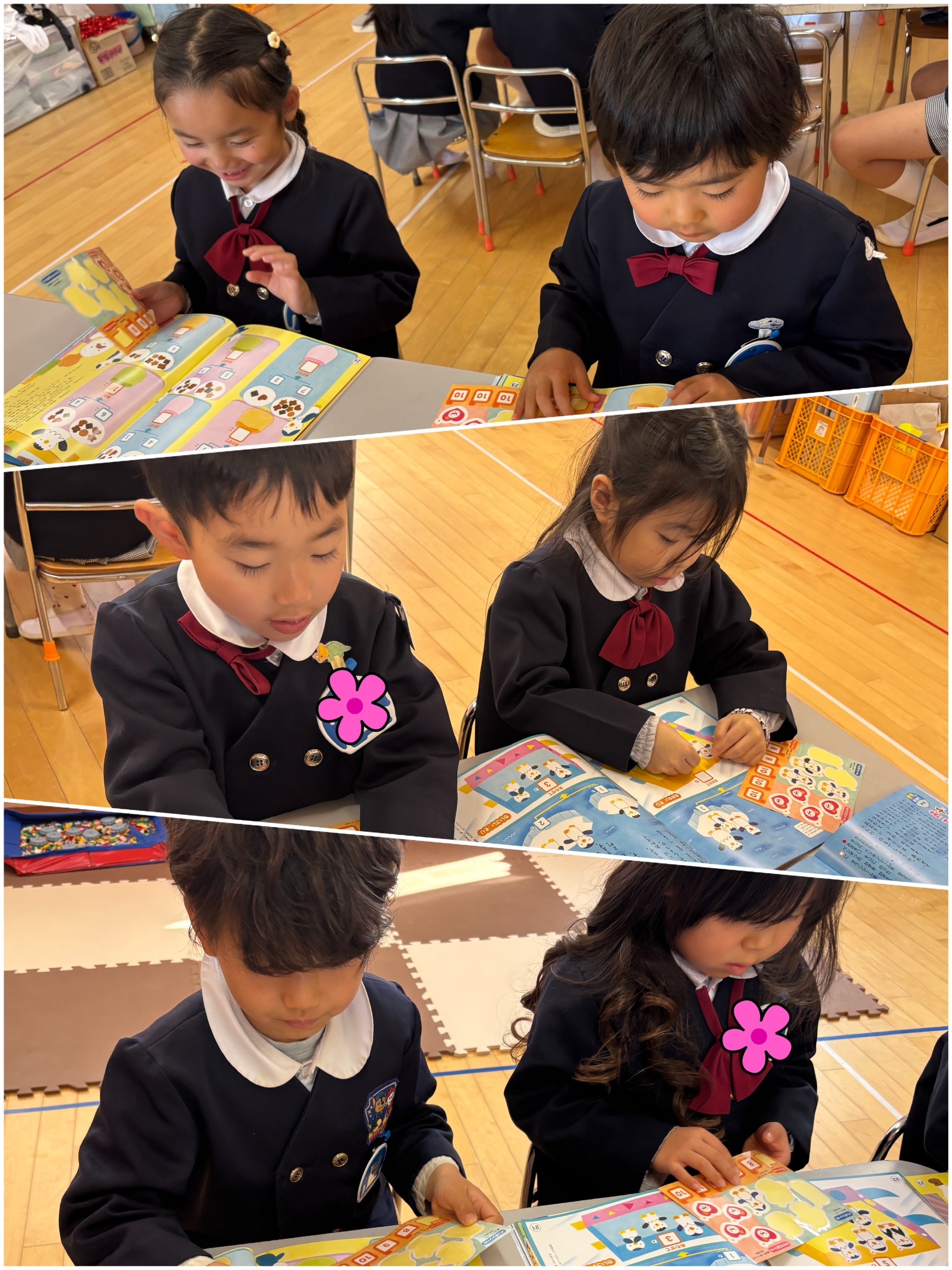 年長 「合わせていくつ?」のシール遊びをしました😊