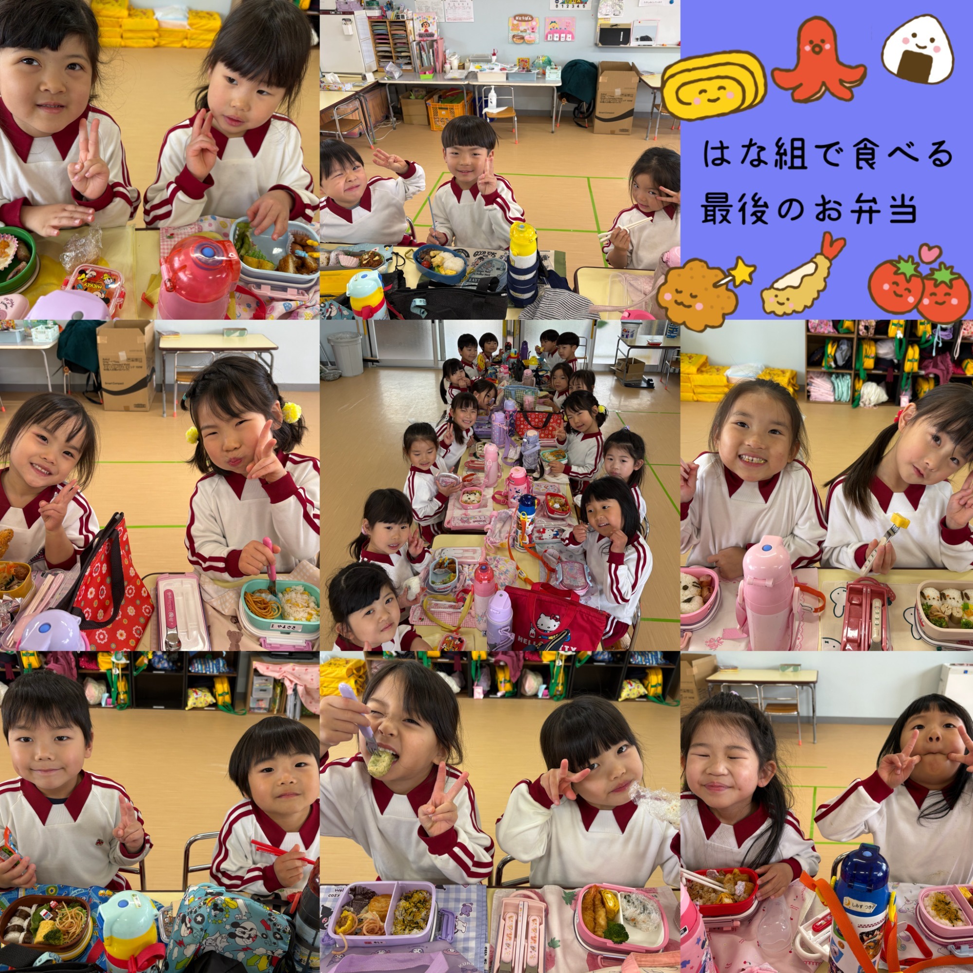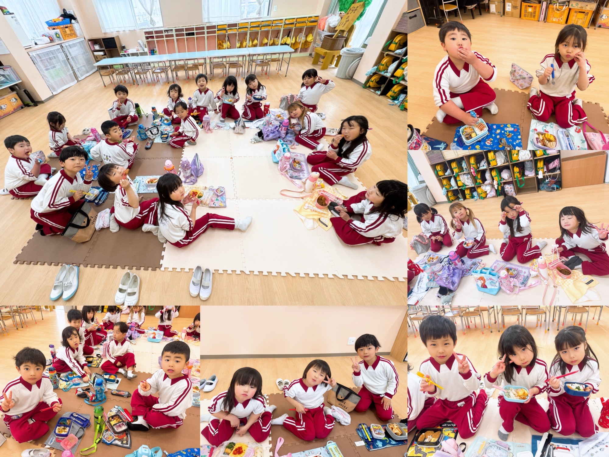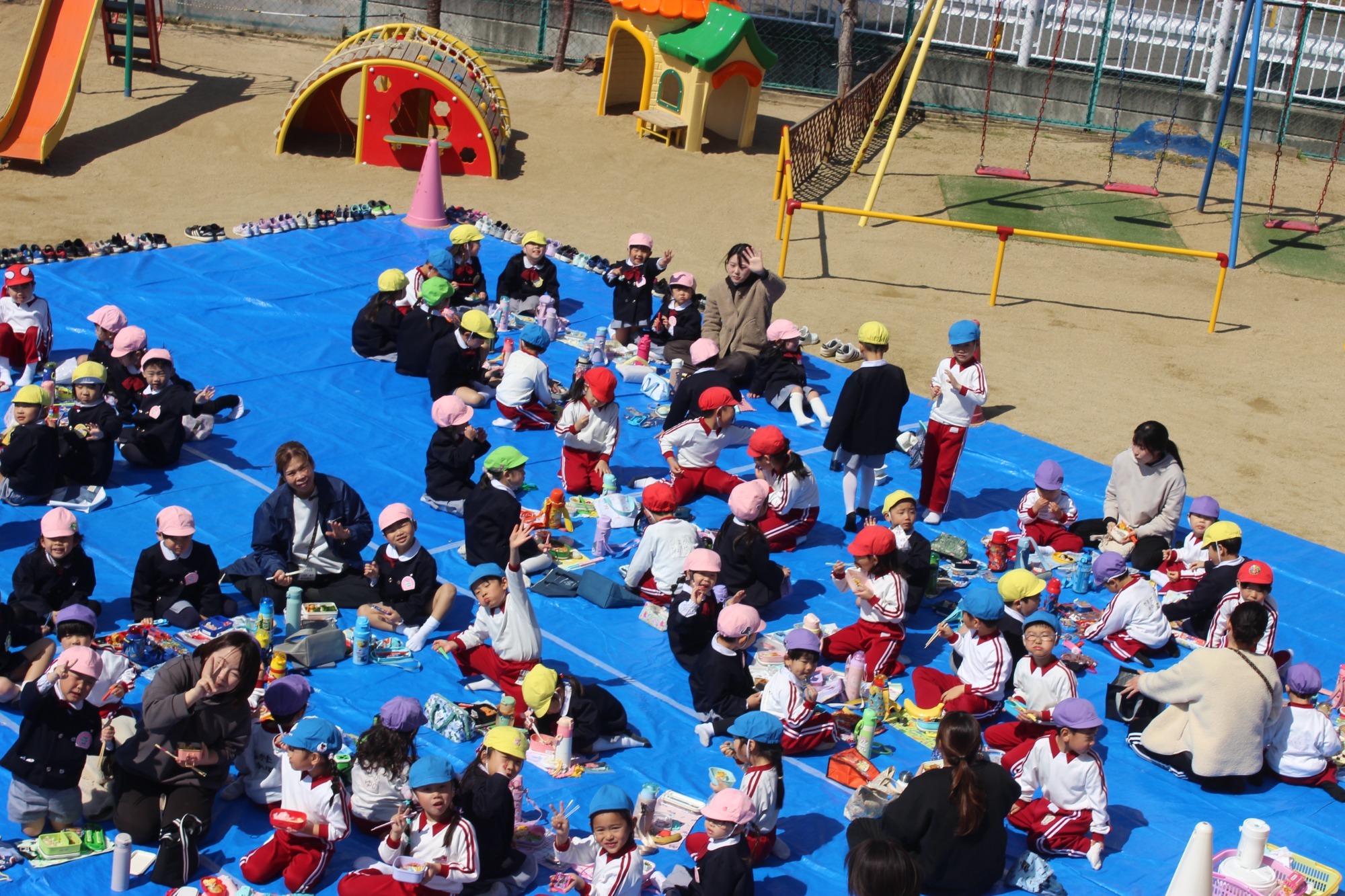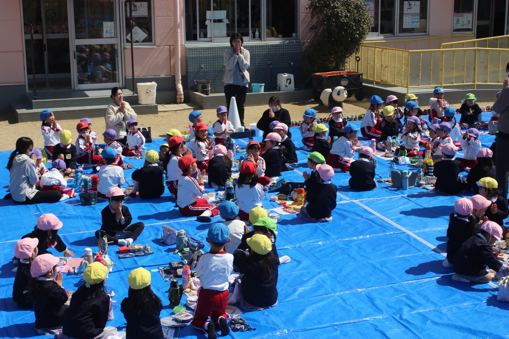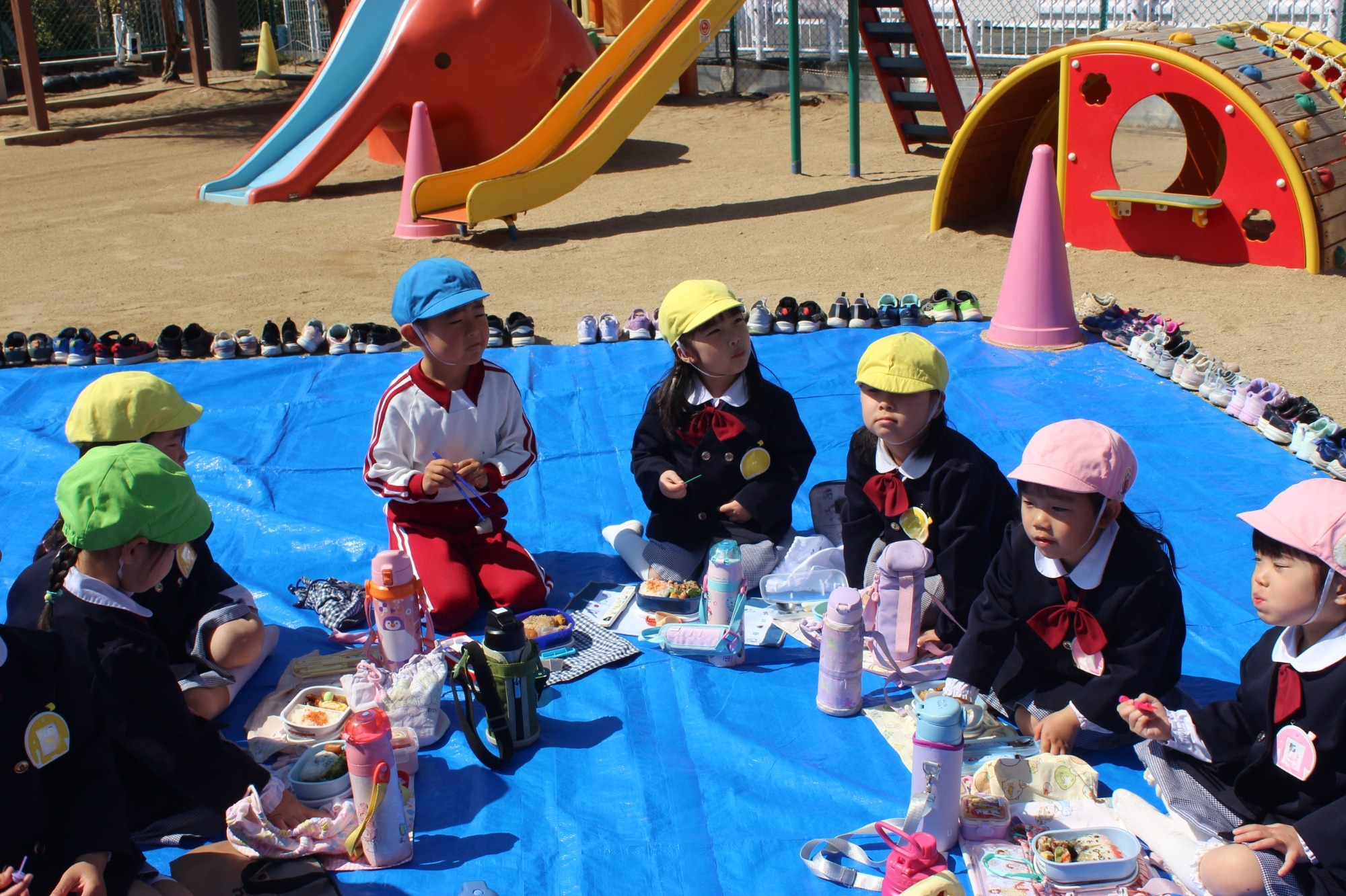 年長組さん最後のお弁当お外でみんなでたべました♪(3/12)