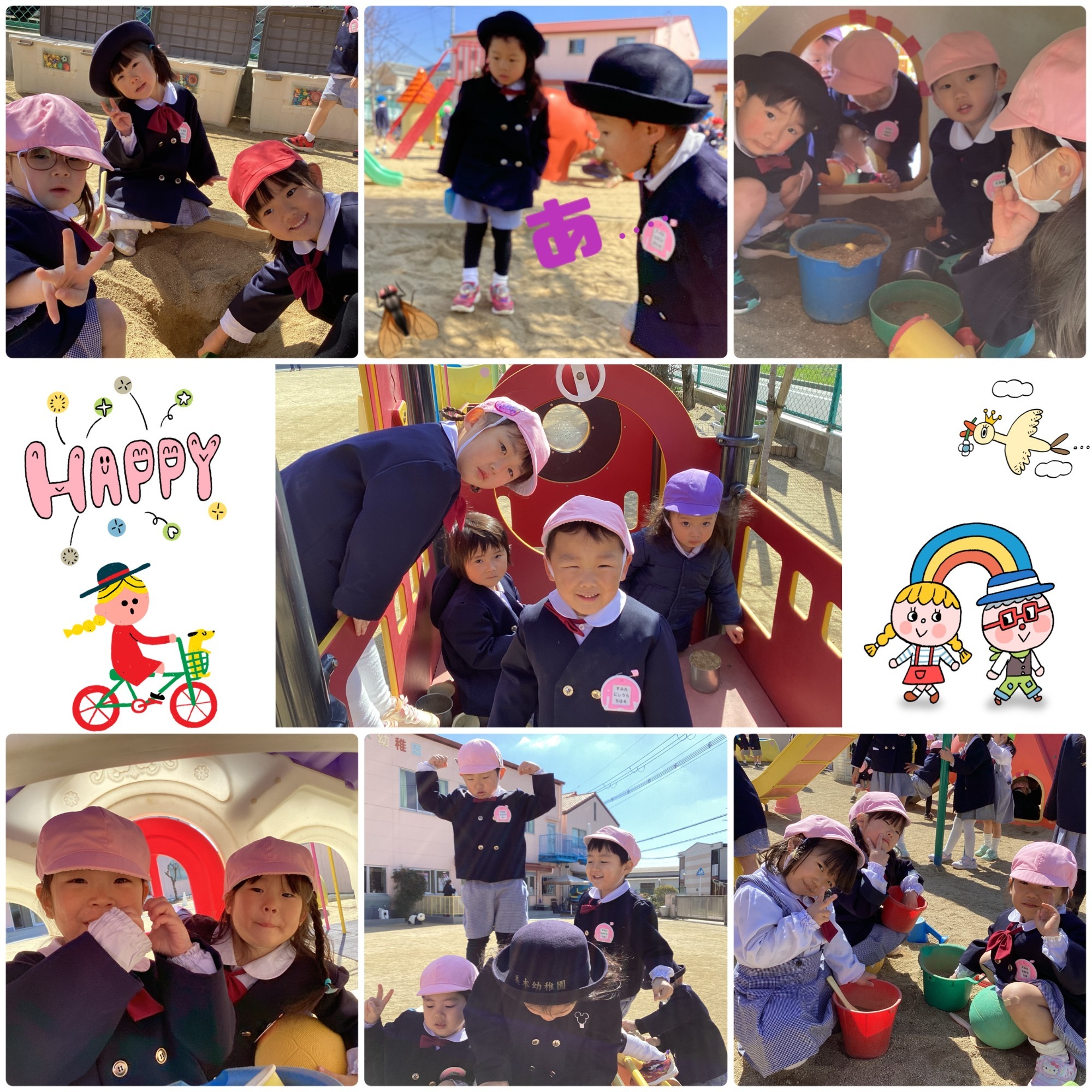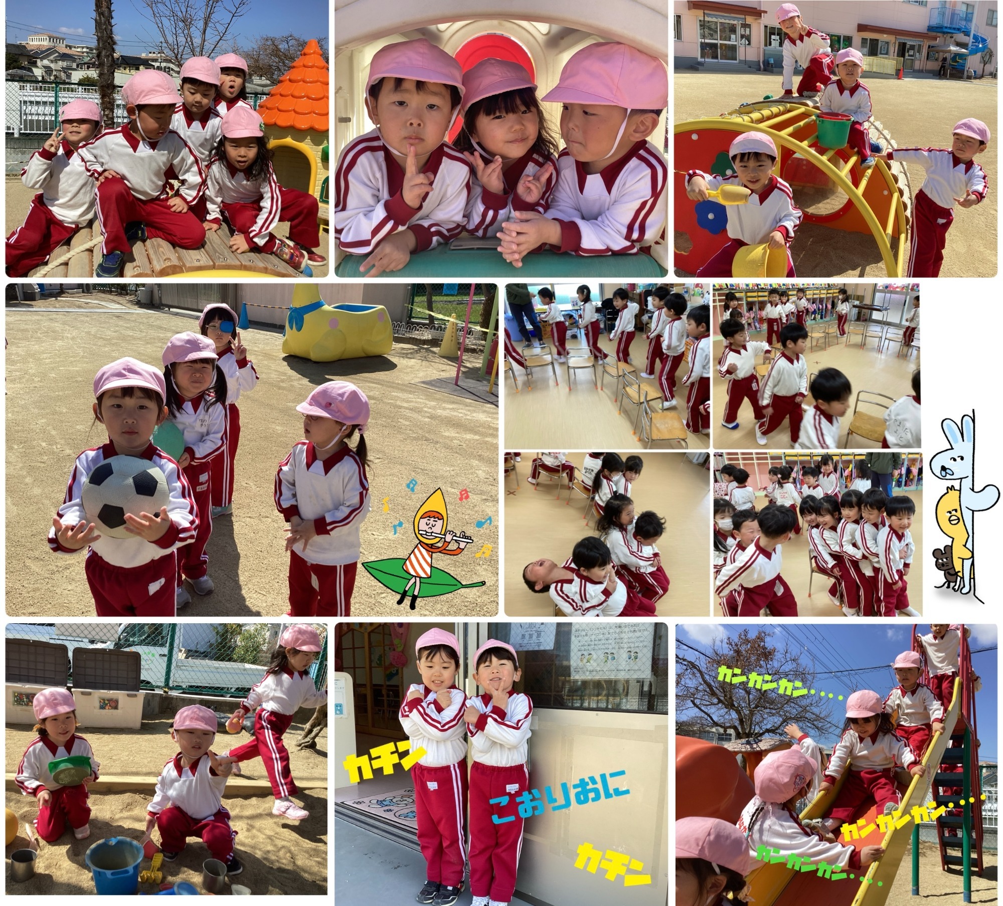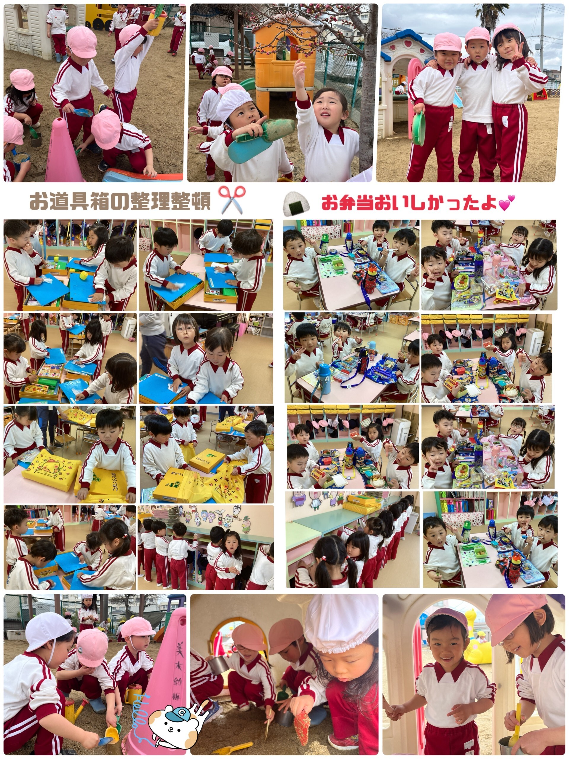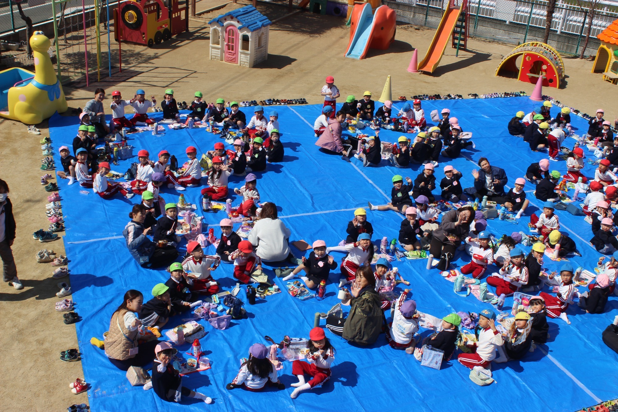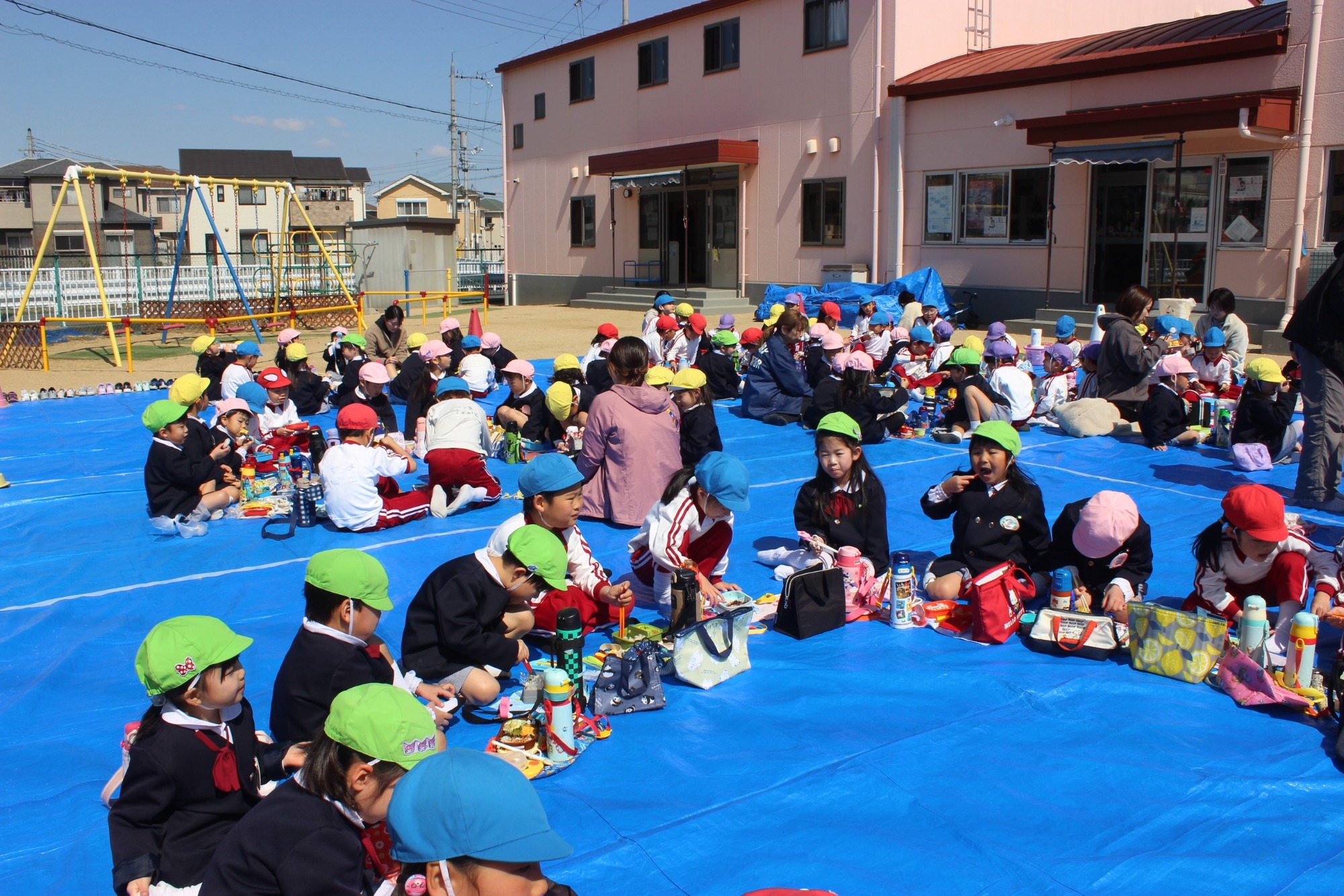 年長組さん最後のお弁当お外でみんなでたべました♪(3/12)