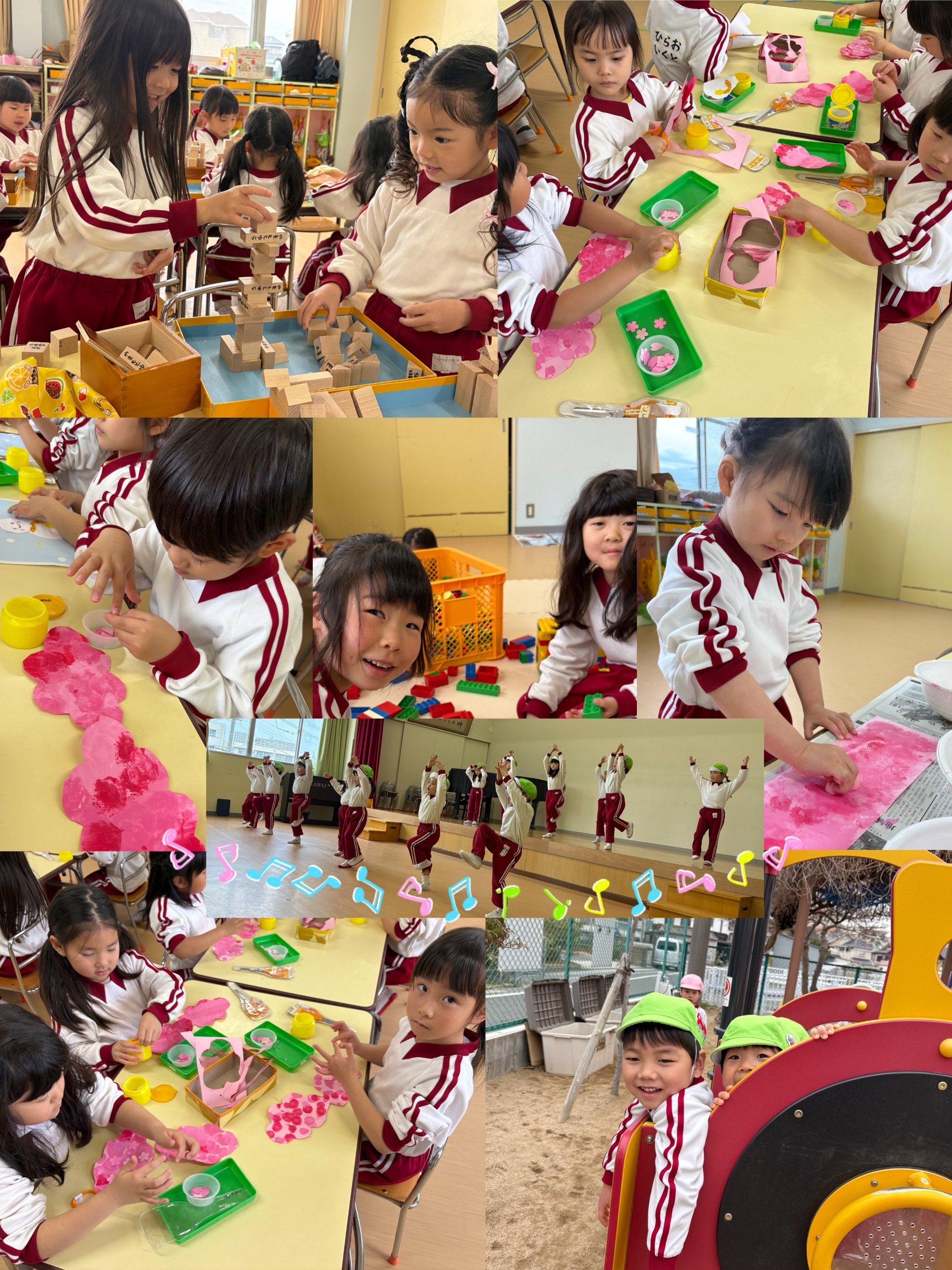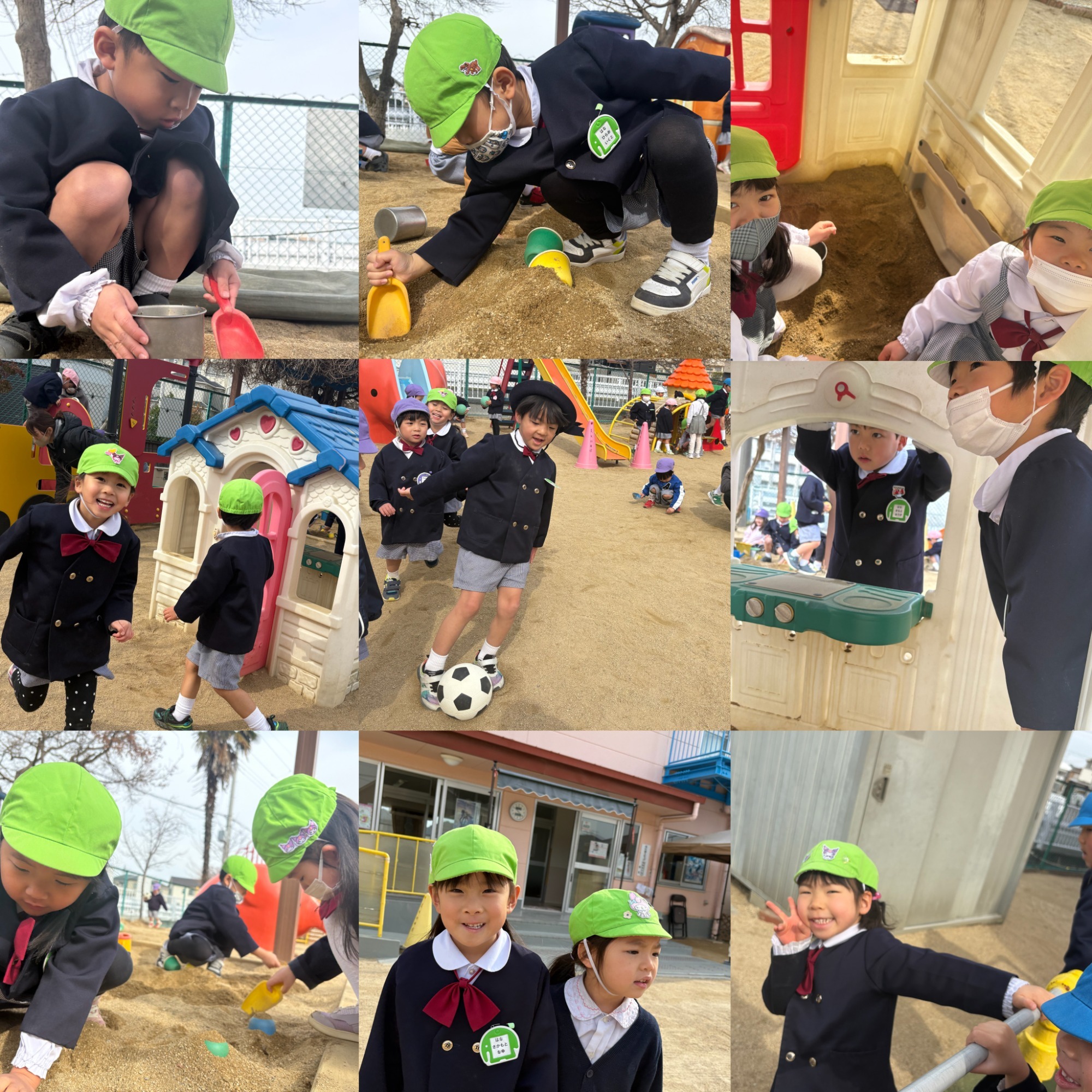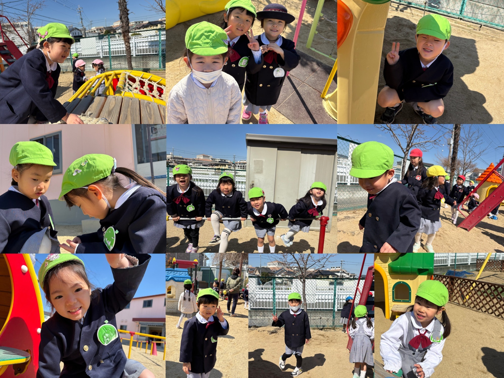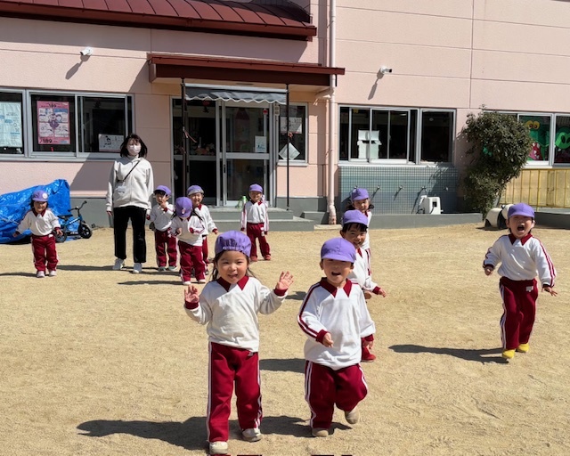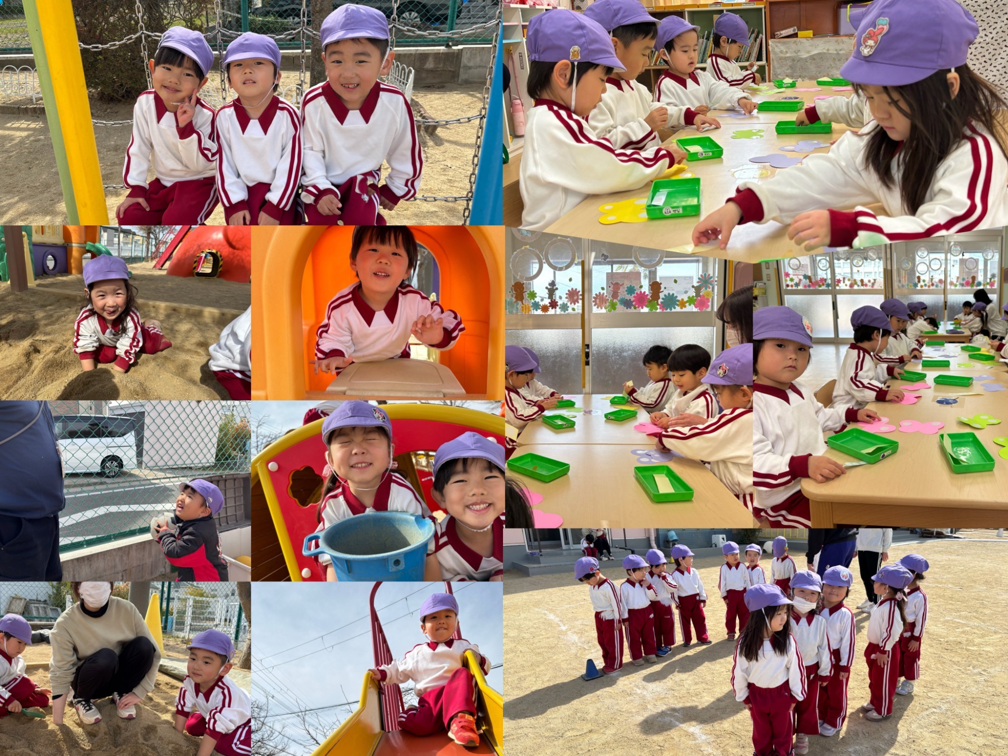 年長組さん最後のお弁当お外でみんなでたべました♪(3/12)