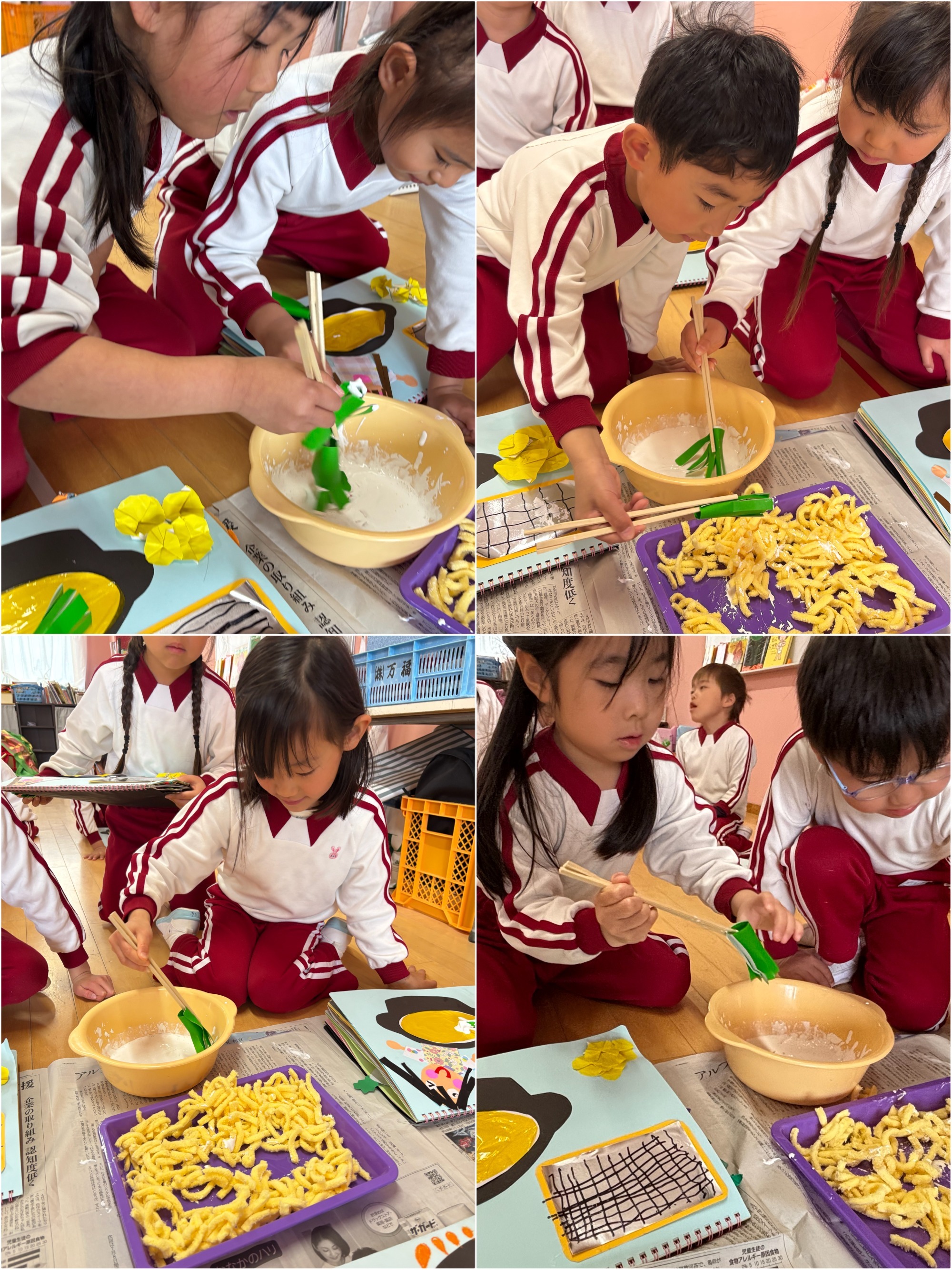 年長 やぶれないようにそーっと、こいのぼりの吹流しをつくりました🎏