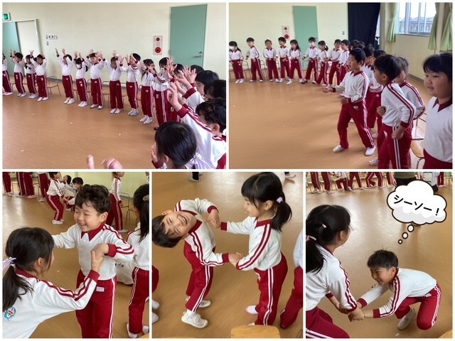 4/9みんなで仲良し椅子取りゲームをして遊びました🎶