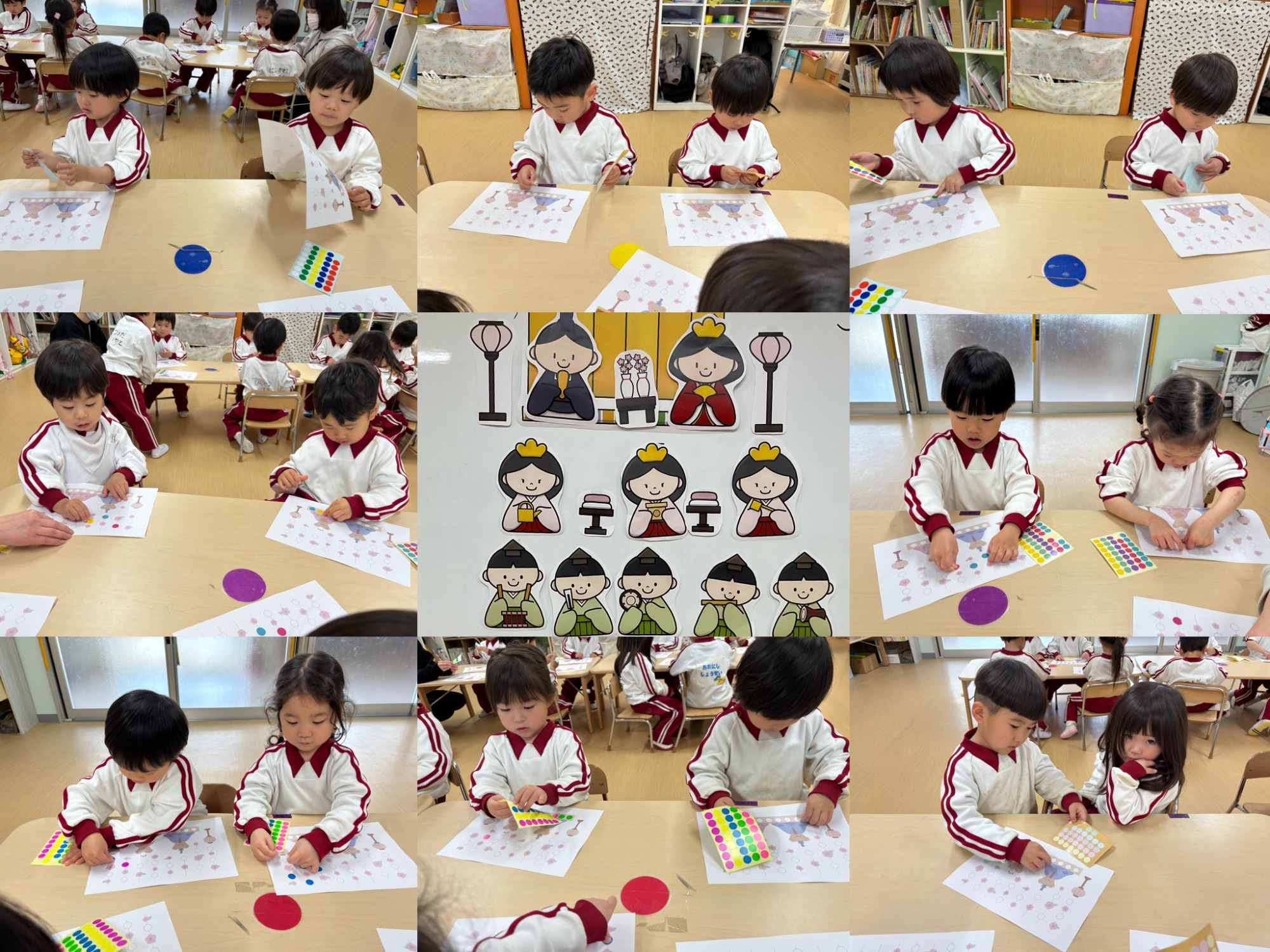 ひな祭りのパネルシアターを見てシールあそびをしました🎎✨