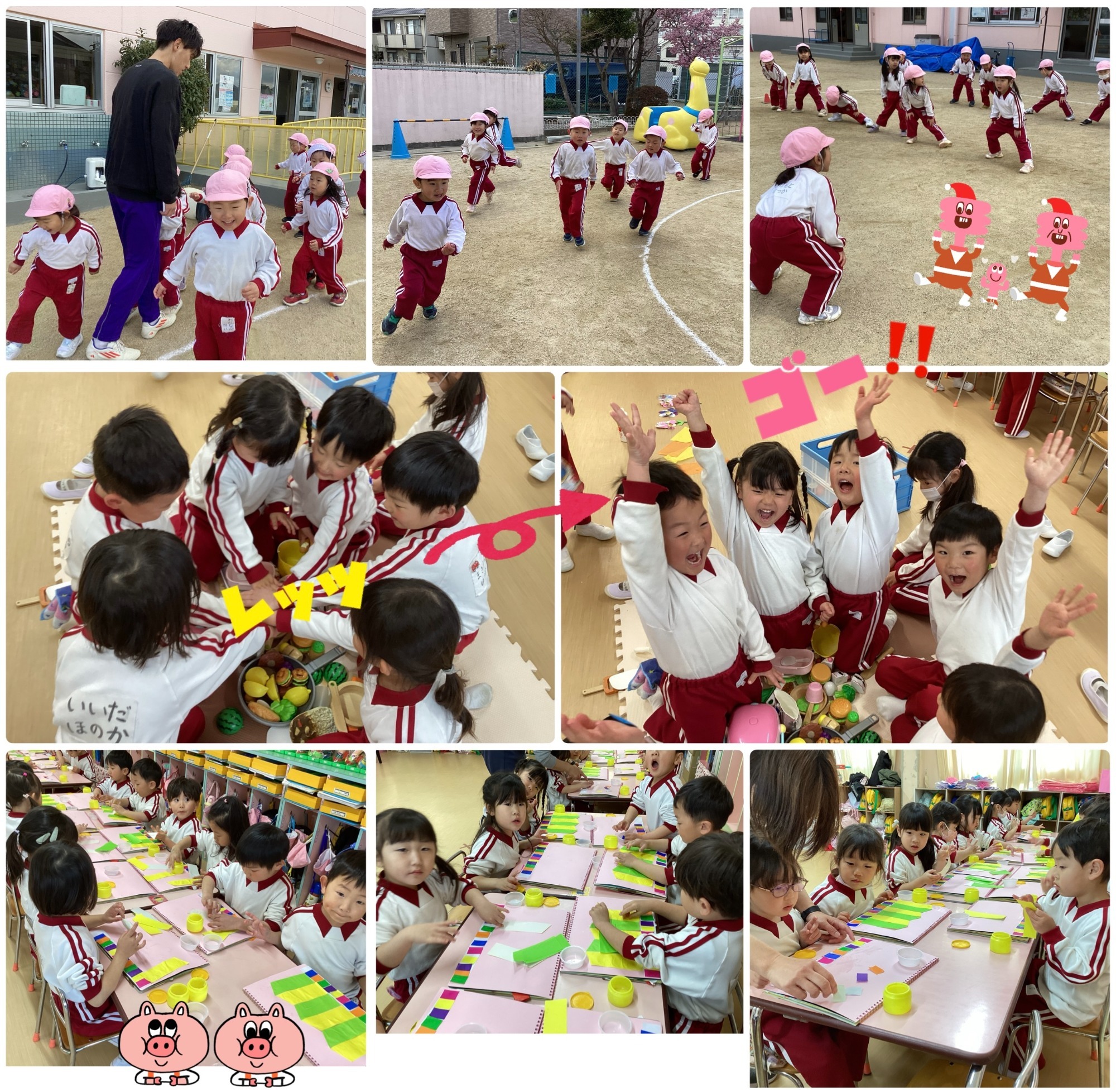 年中 折り紙で🍓を作ったり、4月の絵本で美味しそうな🍕を食べました!!