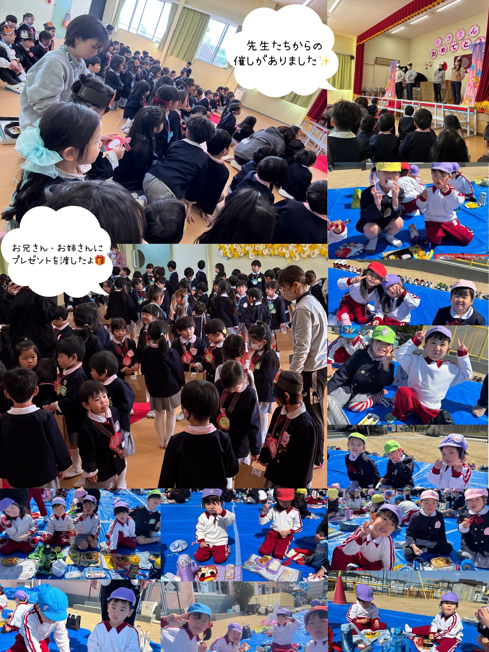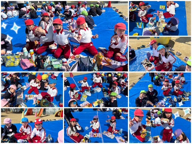 みんなでお外でお弁当を食べて🍙お別れ会をしたよ😊🤍